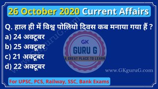 26 October 2020 Current affairs in Hindi