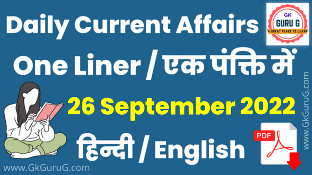 मैं उम्मीद करता हूँ कि आज 26 September 2022 One Liner Current Affairs In Hindi का Post आपको अच्छा लगा होगा। ऐसे ही Daily Current Affairs Quiz पढने के लिए GKGuruG.Com पर विजिट करें। धन्यवाद.....